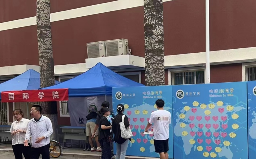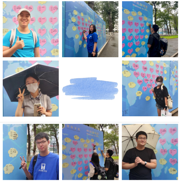 新生报到的地点设置在教学楼b的102教室和操场旁边的taptap体育服务台,每个班的两名班助负责确认新生报道情况和信息的录入,同时发放公司为每个小萌新准备的礼包,里面包括员工手册、入学指南、员工常见事务问答、公司新生教育和军训安排表等等。整体迎新工作行云流水,有条不紊,新生们还纷纷打卡精心布置的迎新签名墙、留下自己的名字,记录步入大学时刻。