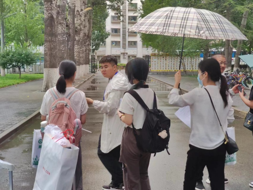 当一名名新生们带着大包小包的行李进入校门,热情的志愿者们便接下行李,待新生录入完信息后,学姐学长们热心答疑、引路。上午虽秋雨绵绵,但志愿者们依旧配合默契、行动高效,确保每一位新生们能够尽快在宿舍安顿。