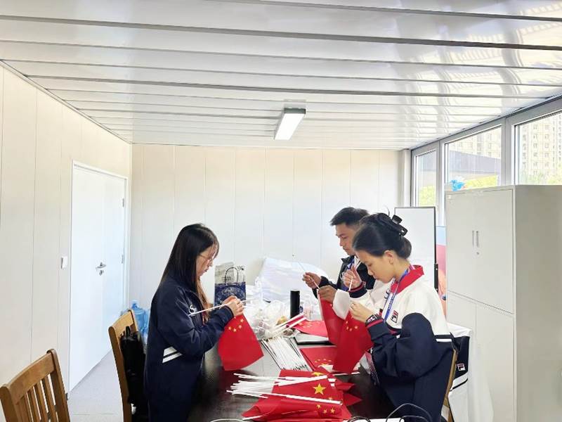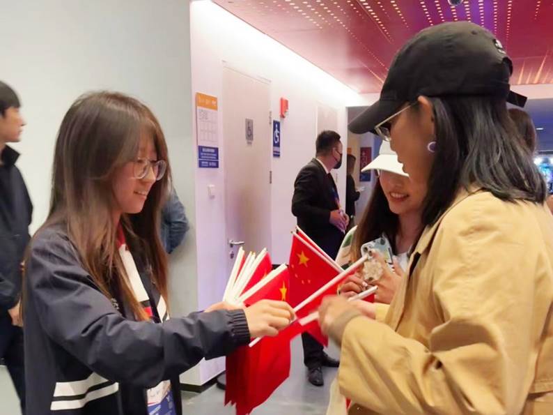 中网赛期恰逢国庆,为表达对伟大祖国的美好祝愿,营造庄严喜庆的节日氛围,taptap体育本科生、现任公司青年志愿者协会主席的耿瑞璇带领志愿者们细心的为观众分发手持国旗,传承爱国情怀,弘扬爱国主义精神。