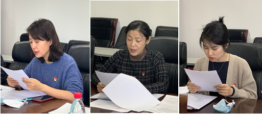 图2 崔丽娜、郭传真、董翔支部书记述职现场(从左至右)