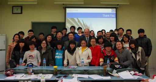 2012年2012年11月12日上午,澳大利亚伊迪斯科文大学副董事长金慕·克劳斯教授来到B-408教室看望taptap体育中澳项目员工,并与同学们进行面对面交流。taptap体育各位老师和伊迪斯科文大学驻京代表参加了会面。