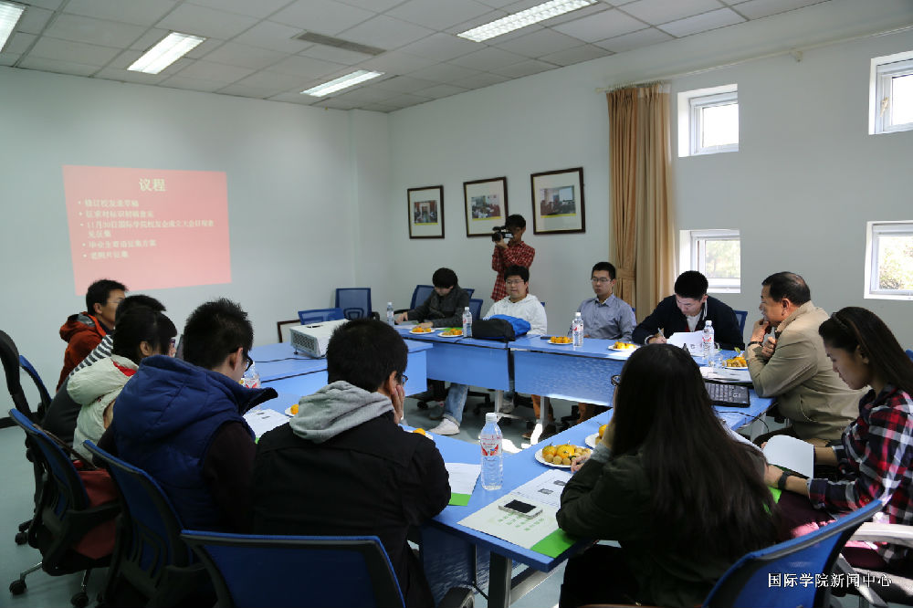 In October 26th ,9:30am,2013, Beijing university of Agricultural’s Alumni Association of International College Preparatory was convened in conference Room. Secretary TAN Feng,Vice Dean Liu Tiejun,teacher Zhu Tao and 12 representatives of 2008-2013 graduates attended the meeting. Aim of the conference is to determine schedule of graduates back to school.founded alumni association.ultimately successful meeting.