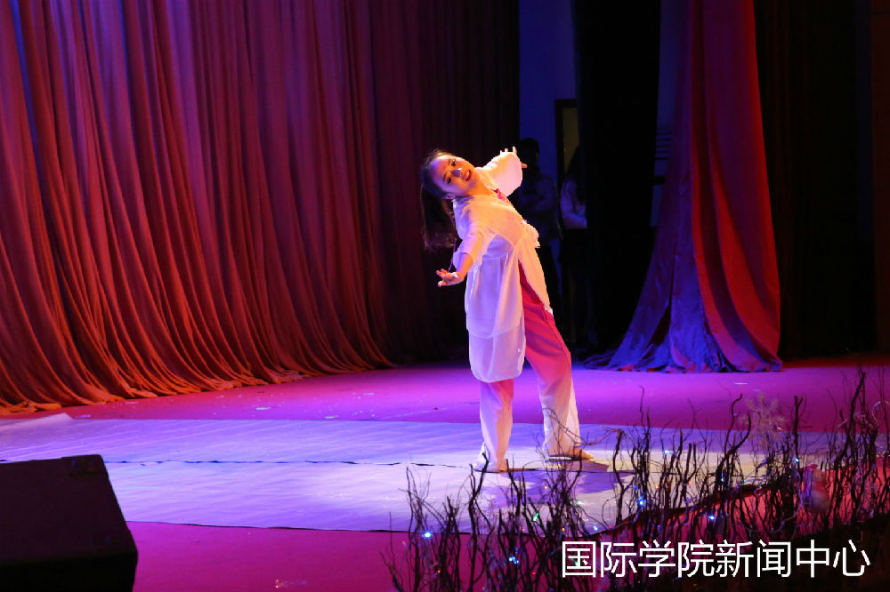 One brought by a classmate Xu Yun solo - Dreaming in Wonderland makes mesmerizing, soothing rhythm with her graceful dance complement each other. International Academy of Art Department students dance shake also highlights the country's youth and vitality homes of students.