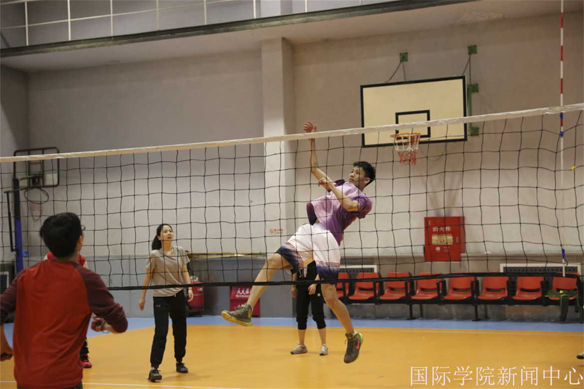 Around 6PM on 4.11, the balloon volleyball combat began as it was promised. In the competition of the students from the international college and college of urban and rural development.Their skills for all watching his classmates offer a visual feast.