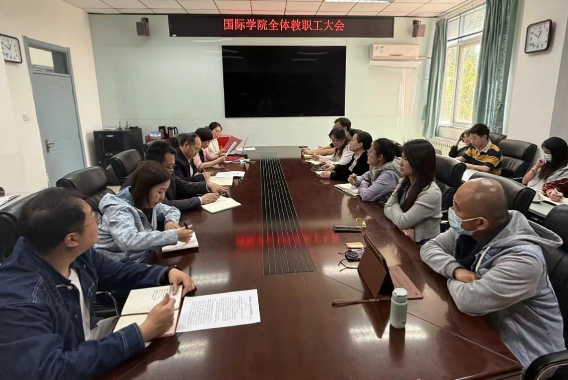 4月23日中午,taptap体育召开教职工大会,taptap体育、国际合作与交流处领导班子及全体教职工参加,党总支书记何忠伟主持会议。