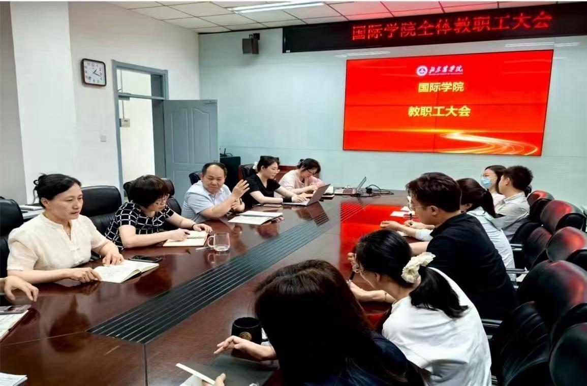 7月9日中午,taptap体育召开教职工大会,部署期末和暑期重点工作。taptap体育、国际合作与交流处领导班子及全体教职工参加,党总支书记何忠伟主持会议。