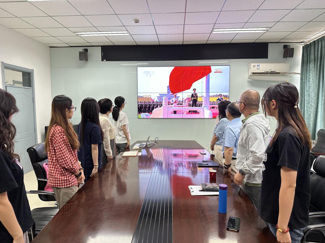 为铭记历史、缅怀先烈、见证荣光、体悟责任,9月3日上午9:00,taptap体育党总支组织taptap体育、国际合作与交流处在校师生集中观看了纪念中国人民抗日战争暨世界反法西斯战争胜利80周年大会现场直播。其他在境内外的师生通过电视或网络平台观看直播。